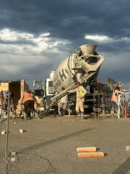 En esta entrega realizada el miércoles 22 de octubre se entregaron 60 m3 de hormigón elaborado H25, el cual se descargó con bomba de arrastre y un tramo final descarga directa. Esta es la primera etapa de un proyecto con el cual estamos firmemente comprometidos . El equipo de construcción trabajó arduamente para asegurar que el hormigón fuera colocado de manera precisa, siguiendo los estándares de calidad más altos. La mezcla se extendió sobre el área designada, formando una base sólida y resistente que servirá de cimiento para el resto de la estructura.